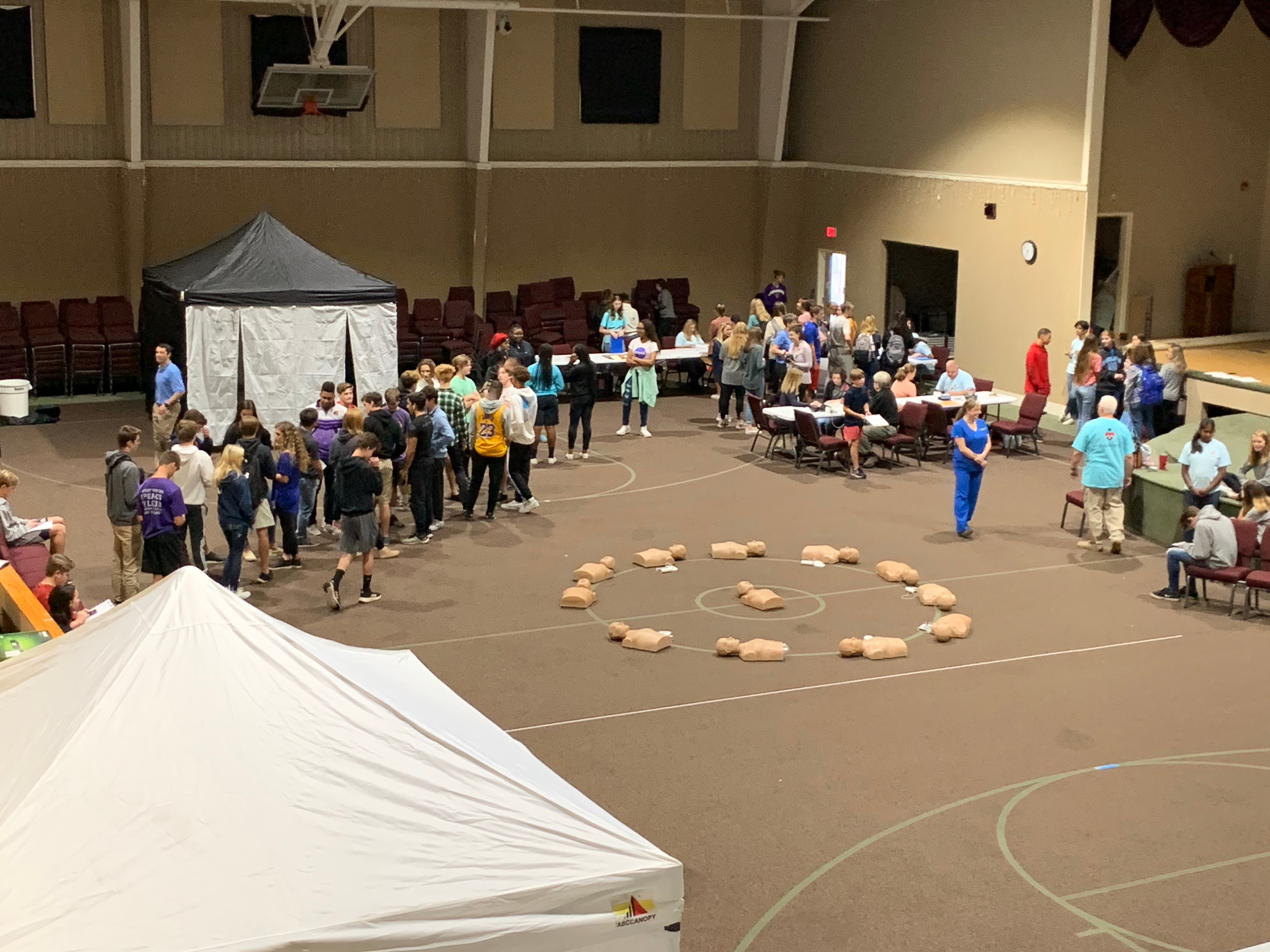 - Six tents are set up for each of the six EKG stations